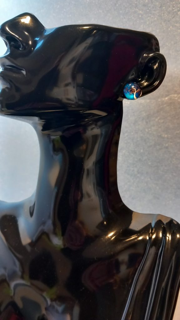 Boucles d’oreilles clous plates en acier inoxydable, et petits disques dorés en acier inoxydable.